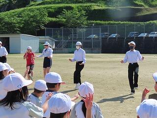 5月10日 朝の時間に、運動会の開会式直後に行われるエール交換と応援の練習をしました。