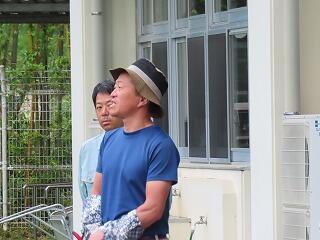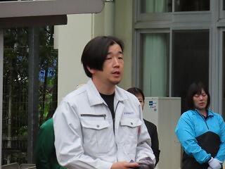 始めに全参加者集合して環境部長とPTA会長があいさつをしました。