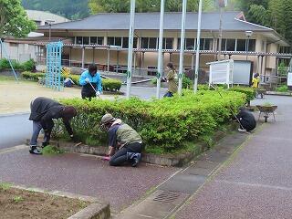 5月12日(日) 数日前から雨予報が出ていましたので、この日は児童生徒は参加せずに保護者・教職員による作業を行いました。