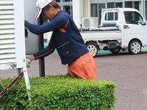 植え込みをきれいに刈り揃えていただきました。プール横フェンスに絡まった草も取っていただきました。