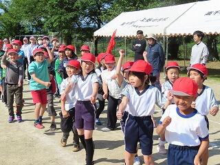 準備運動をして団席への移動です。子どもたちのエネルギーが高まっていきます。