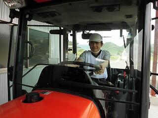 猛暑の中でも活動できるトラクターを見せていただきました。冷暖房、音響、完備です。