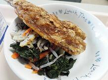 麦ごはん ホキ天玉揚げ ブロッコリー