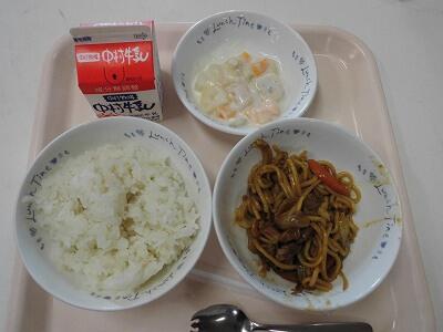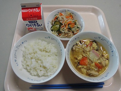 根菜カレーライス ブロッコリーサラダ 牛乳