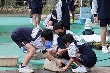 PTA奉仕作業を終わった後、残ってくださった保護者と子どもたちとでプール清掃を行いました。