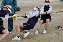 昨日に引き続き、今日も1時間目に合同体育を行いました。今日行ったのは、綱引きの練習と競技役員の指導です。「綱引き」や「応援」の練習は、本番さながらに盛り上がりました。