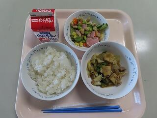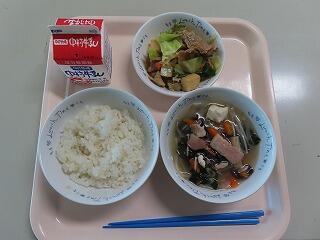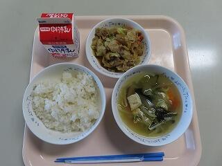 麦ごはん 回鍋肉 中華スープ 牛乳