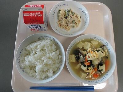 五目豆腐スープ 牛乳