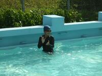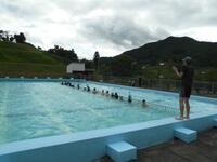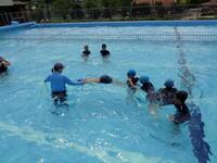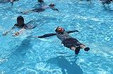 1学期最後の水泳の授業ということもあり、4・5・6年生合同で着衣泳の授業を行いました。水着の上に洋服を着てプールに入り、普段とは違う水の感覚に驚いていました。