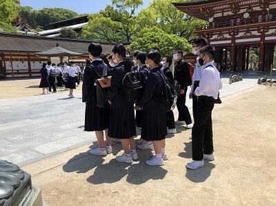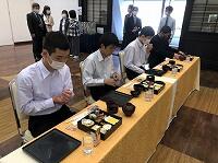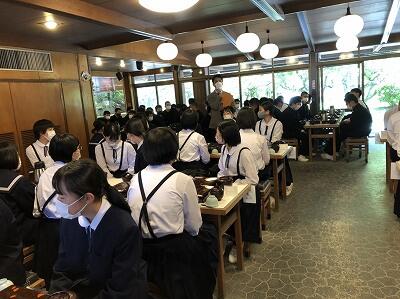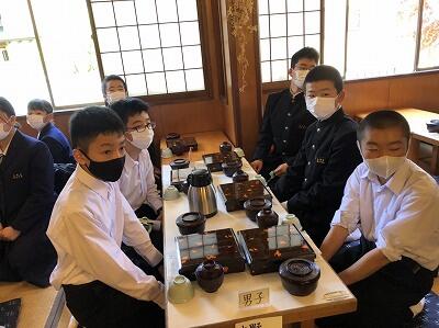太宰府にて昼食です。新型コロナ対策として、子どもたちはしゃべることなく、短い時間で、終始無言で食べていました。