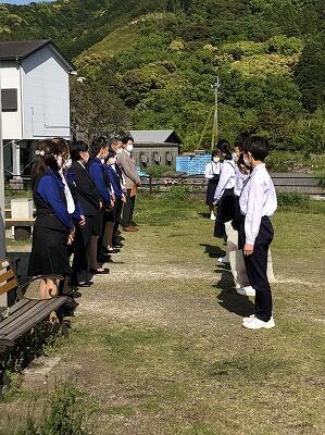上野中学校では学校の掲揚台に旗を掲げたり、校内の花に水をあげたりという活動を行っていきます。
