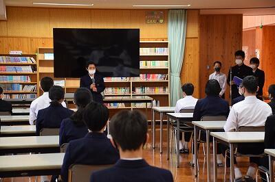 コロナ禍で代表の方が来られないために学校長が、新たに加入する1年生の代表にバッジをおくりました。