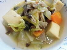 麦ごはん 厚揚げと白菜のピリ辛炒め