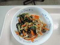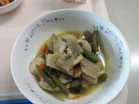 今日の献立の揚げ魚の香り和えとごま和えは、ハムサラダに変更になりました。