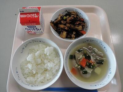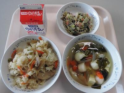 タケノコごはん 小松菜のごま和え イワシつみれ汁 牛乳