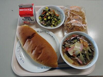 今日の献立は、中華丼、春雨スープ、牛乳です。