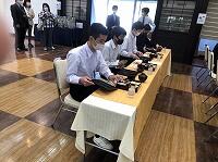 太宰府にて昼食です。新型コロナ対策として、子どもたちはしゃべることなく、短い時間で、終始無言で食べていました。