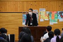 小中合同の終業式の後は、会場を分けて小学校と中学校で別々に学習や生活、健康など、冬休みの過ごし方について具体的に話をしました。