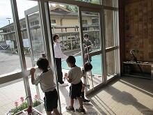 今日の掃除の時間は「玄武タイム」でした。この時間を使い、全校児童・生徒で校内の窓ガラスの掃除をしました。上野小学校と上野中学校は、小学生と中学生が同じ校舎で勉強しています。普段から、小学1年生から中学3年生までの「縦割り」で清掃しています。今日の窓ガラスふきも、中学生や小学5・6年生の背の高い児童・生徒が高いところにある窓の掃除をしていました。