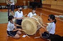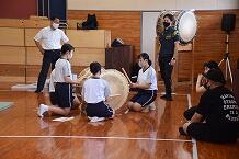 中学生は、文化祭で発表する神楽と上野臼太鼓踊りの練習をしました。夏休みに入ってすぐに3日間の練習を行いましたが、それから約50日ぶりの練習でした。地域のお師匠様から直接学ぶことができる貴重な伝統芸能です。発表まであと3週間ですが、今から当日の発表が楽しみになるくらいしっかり取り組むことができました。