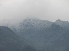 今朝の上野は昨夜の雨が残っていました。子どもたちが登校する時間帯には雨がやんでいましたが、曇り空で、山には雪が残っていました。