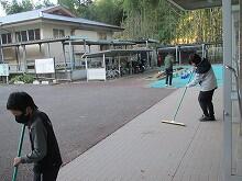 中学3年と小学6年の学級担任の先生も子どもたちと一緒に掃除をしていました。また、低学年の子どもたちは寒さに負けず、元気に遊んでいました。