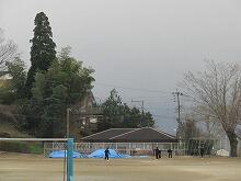 今日は朝から風が強く吹いていました。いつもは多くの小学生が遊んでいる昼休みの運動場ですが、今日は中学生がサッカーをしているだけでした。