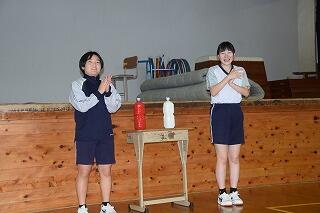 勝ったB団からペットボトルを選びました。力一杯ペットボトルを振りました。
