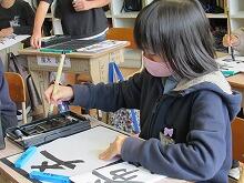 小学5年生の3・4時間目の授業は「書写」でした。今日の授業では、楷書で「希望」と書き、先生の指導を受けながら何度も練習して書いていました。線が太く、力強く書いている児童が多いと思いました。
