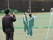 今朝の上野は曇っていますが、いつもほどの寒さはなく、上着がなくても過ごせます。運動場では中学1年生が保体の授業で「ソフトテニス」をしています。2名はソフトテニス部ですが、残りの3名は普段は竹刀を握っているので、まずはラケットに慣れ、ボールを相手に返すところから練習していました。学級担任の先生は子どもたちの奮闘ぶりを写真撮影です。