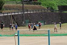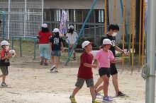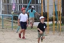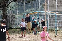 昼休み、昨日のPTA奉仕作業できれいになった運動場で子どもたちは元気よく、そして楽しそうに遊んでいました。小学校の先生たちは、子どもたちと一緒に元気よく遊んでいました。