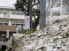 昨夜遅くに降ったのか、今朝外を見るとうっすらと雪が積もっていました。登校後、雪合戦をしたり、小さな雪だるまを作った子どももいました。雪は溶けましたが、午前中は曇っていて、校長室の室温は8℃です。今日も寒い1日になりそうです。