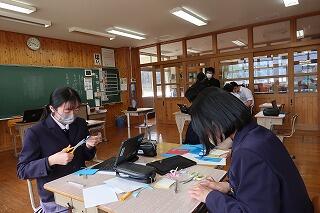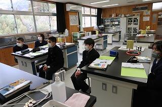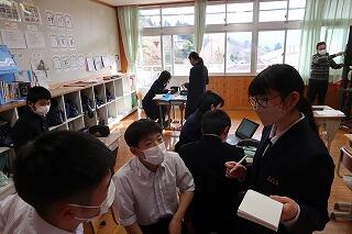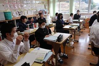 写真は中学校の6時間目の授業のようすです。1年生は国語、2年生は理科でした。3年生は5時間目に高校入試に向けた面接の練習をした後、卒業に向けた準備をしていました。