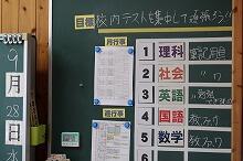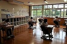 校舎3階の中学生の教室では、校内テストを生徒が受けています。