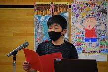 式では、まず小学生と中学生の代表児童生徒がそれぞれ新年の抱負を発表しました。二人とも昨年の反省を踏まえながら、今年がんばりたいことを具体的に発表しました。