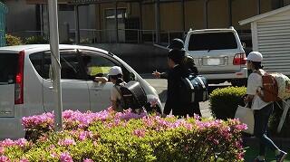 迎えの自動車が混雑しないように、グランドの周りの道路を同じ向きに移動してもらいます。