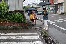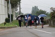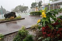 今朝の上野は曇り空で、子どもたちが登校してきた時間には小雨が降り始めました。2時間目には雷鳴が響き、強い雨が降りました。小学5年生が植えたイネは成長し色づいてきていましたが、先日の台風で倒れてしまっています。予定を変更して、明日、稲刈りを予定していますが、今日の雨で延期するかもしれません。