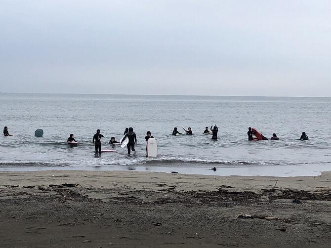 マリンスポーツの時だけ奇跡的に雨が上がり、楽しく体験することができました。みんな、すごく楽しそうでした。