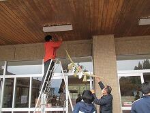 先週末から寒い日が続いています。今朝も上野は寒く、”みっとぎり”にも雪が残り、窓から冷たい風が入ってきます。今日は仕事納めです。玄関にしめ縄を飾り、職員室には鏡餅を飾りました。