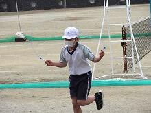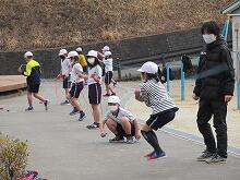 2時間目の運動場では小学3年生と4年生が体育の授業で縄跳びや鉄棒をしていました。気温は2℃です。寒さに負けず、元気な上野っ子たちです。