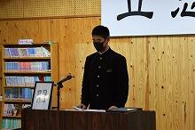 2月18日(金曜日)、中学2年生が「立志のつどい」を行いました。校長の話に続き、2年生全員で立志の誓いを宣言しました。その後、一人ずつ立志の抱負を発表しました。