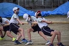 昨日に引き続き、今日も1時間目に合同体育を行いました。今日行ったのは、綱引きの練習と競技役員の指導です。「綱引き」や「応援」の練習は、本番さながらに盛り上がりました。