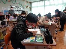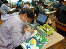 小学6年生の「ICTを使った授業」を参観しました。授業では、マイクロソフトチームスを使い、子どもたちは、準備してあるパワーポイントのスライドに問題の解答をそれぞれ書いていきました。パワーポイントのスライドを使うことで、子どもたちは他の児童の解答も見ることができ、お互いの解き方を参考にしながら、正しい解き方を考え、まとめました。
