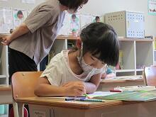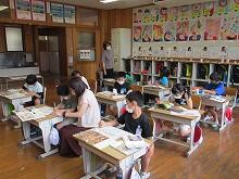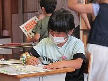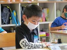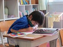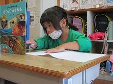 小学1年生が国語の授業で、生き物の隠れ方を調べてカードにまとめていました。一人一人自分が興味を持った生き物について本で調べてまとめていました。小学校に入学して半年が経とうとしています。4月とは見違えるほど成長し、自分の力で調べ、まとめることができるようになりました。