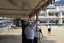 また、役員の皆様のご協力により、会場には万国旗が張られ、入退場門も完成し、明日の開催を待つばかりとなりました。ありがとうございました。