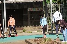 今朝の上野はよく晴れています。登校してくる子どもたちも笑顔が多いような気がします。登校した子どもたちは、テントの汚れ落としや運動場の小石拾い、花や野菜の苗への水やり、掃除などいろいろな活動をしてくれています。ありがとうございます。