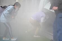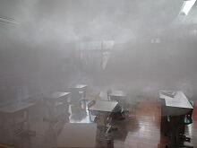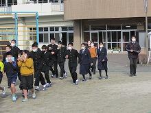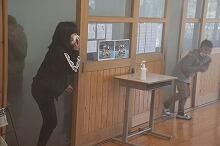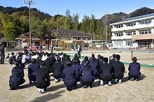 西臼杵消防署に協力していただいて、校舎内での火災を想定した避難訓練を本日行いました。火災発生後は教室から運動場に避難し、その場で消防士の方から火災に関する話をしていただきました。その後、機械で煙を発生させて充満させて教室を通りました。明るい教室をまっすぐに進むだけでしたが、煙で前が見えないことを子どもたちは学ぶことができました。