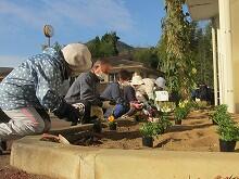 今日は地域の方にお越しいただき、小学1・2年生がパンジーやビオラ、キンギョソウ、ノースポールなどの花の苗を一緒に植えました。1時間目の活動でしたが、皆様のご協力で早く終わり、残った時間は除草作業や落ち葉掃きまでしていただきました。