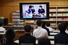 コロナ禍で代表の方が来られないために学校長が、新たに加入する1年生の代表にバッジをおくりました。