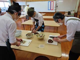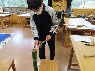 3月8日に行われた野外活動のときに使った竹の準備や郷土料理の具材の準備は、事前に3年生が行いました。